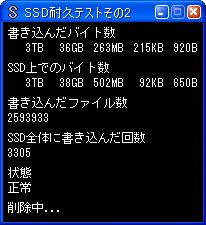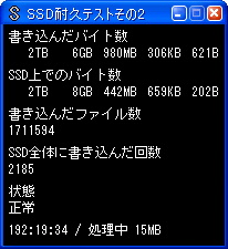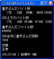 今回は書き込み速度が速いので、もう1TBになった。もしウェアレベリングが機能していなかったら、この時点で壊れていたことだろう。