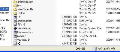 ファイルの合計が20GBと表示されているが、最近のSSDは容量を超えて保存できるんだろうか。がんばり屋さんなSSDだなと感心している場合ではない、これは1つのファイルの中身だ。元は13MB前後のファイルだったと思うが、このように複数のフォルダーとファイルになってしまった。