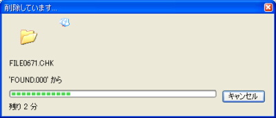 前回と異なる点がこれ。普通にファイルを削除できてしまう。どうやら書き込めない部分が少し存在するだけで、他はまだ無事なようだ。いや、先程のエクスプローラーの中身を見て、無事と呼ぶのはおかしいのだが……。