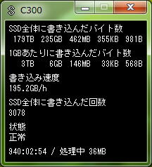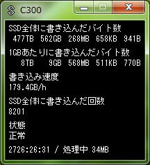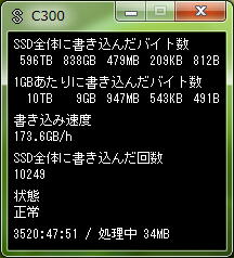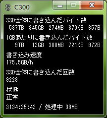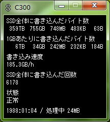 現在6178回、合計359.7TB書き込めた。書き込み速度が185.3GB/hまで落ちた。今までは遅くなっても190GB/hを超えていたが、最近は下がり続けている。