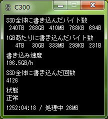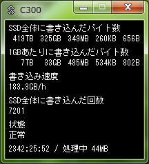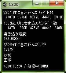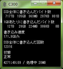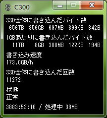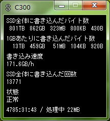 SSD耐久テストを再開した。再開といってもX25-Vはもう手元にないので、押し入れで寝ていて無事だったC300の出番だ。Samsung MZ-5PAも買っておいたのだが、しっかりとしたケースに入っていても震災には無意味だったようで、開封することなく終了。