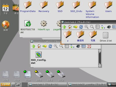 HG5dと同じように、不明(AD)が1になって3日後に壊れた。これで東芝製SSDは3台目なので、壊れてもPuppy Linuxに無視されても余裕だ。接続してから3〜4分後にマウント成功、無事にファイルを取り出すことができた。HG5dと比べると、マウント後のファイル認識が遅いのが気になったが、コピーは速いので問題ないだろう。